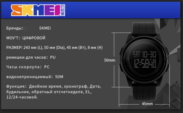 Бренд Skmei стал одним из лидером продаж в Европе за 2019-й год. Основным преимуществом бренда является высокое качество при очень приемлемой цене. Тактические часы оснащены механизмом Quartz и имеют точный ход. Все модели выполнены с использованием органического, поликарбонатного стекла с повышенной ударопрочностью. Также, часы имеют подсветку, секундомер, могут выдерживать погружение до 3-х метров и станут незаменимым помощником в любой ситуации. В комплекте идет официальная гарантия.