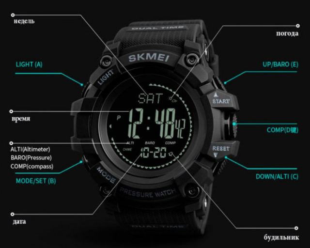 Бренд Skmei став одним із лідером продажів у Європі за 2019-й рік. Основною перевагою моделі Skmei Processor є наявність безлічі корисних функцій: компаса, барометра, альтиметра, крокоміра, підсвічування й багатьох інших. Годинник має підвищену ударостійкість і водостійкість 3 атм, може використовуватися за низьких температур і стануть незамінним помічником у будь-якій ситуації. Це оптимальний вибір для активних людей.