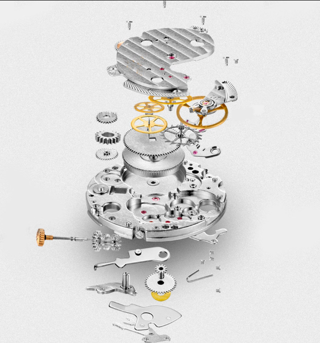 Скло: Сапфірове скло, на відміну від мінерального, має високий ступінь твердості та надає годиннику блиску, який не втрачається впродовж багатьох років. Задня кришка повністю прозора.