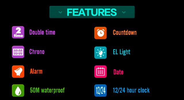 | Тип призначення | Водонепроникні спортивні годинники з підсвічуванням і будильником з каучуковим ремінцем |