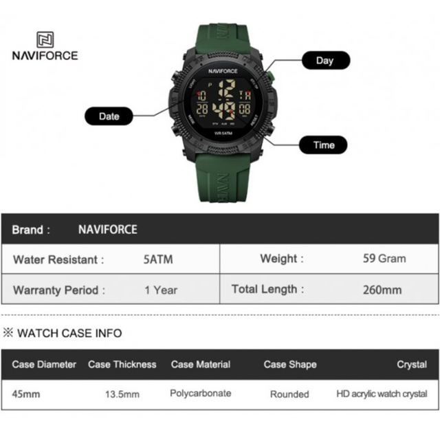 Бренд Naviforce спеціалізується на створенні годинників, які не тільки вражають своїм стильним дизайном, але й відповідають високим стандартам довговічності та захисту від негативних зовнішніх факторів.