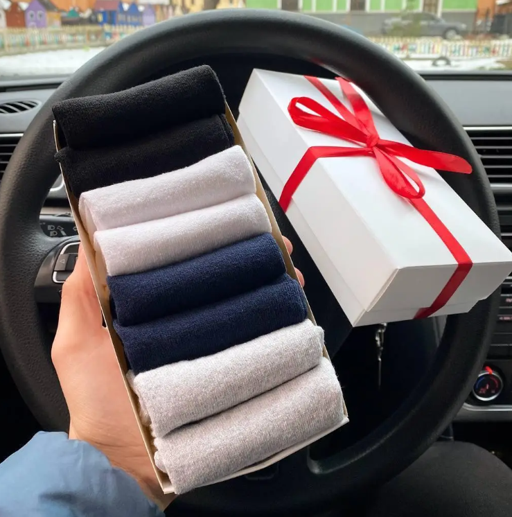 Подарунковий бокс шкарпеток — це чудовий сюрприз, оригінальний подарунок і привід потішити улюблених людей, рідних, близьких та друзів. Подарунковий набір у свято подарує позитивні емоції своєму одержувачу та зробить на нього приємні враження, це універсальні подарунки на всі випадки життя, який підкорить серце одержувача. Комфортні, приємні та м'які на дотик шкарпетки ідеально сидять на нозі. Саме завдяки таким властивостям матеріалів, шкарпетки слугуватимуть довго, матимуть стильний вигляд та подарують вам багато позитивних емоцій. Шкарпетки ідеально додадуть практичності та підійдуть під будь-який стиль одягу. Чоловічі короткі шкарпетки виготовлені з бавовни високої якості. Зручні якісні шкарпетки представлені в універсальному розмірі 41-45.