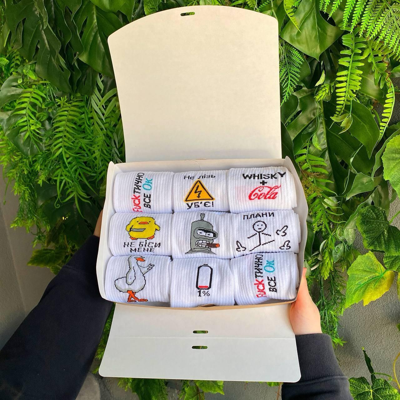 Подарунковий набір шкарпеток чоловічих високих демісезонних однотонних з приколом 40-45 9 пар на креативний подарунок